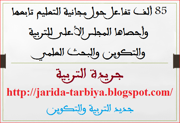 أفادت جريدة الأحداث المغربية بأن 85 ألف تفاعل حول مجانية التعليم تابعها وأحصاها المجلس الأعلى للتربية والتكوين والبحث العلمي...