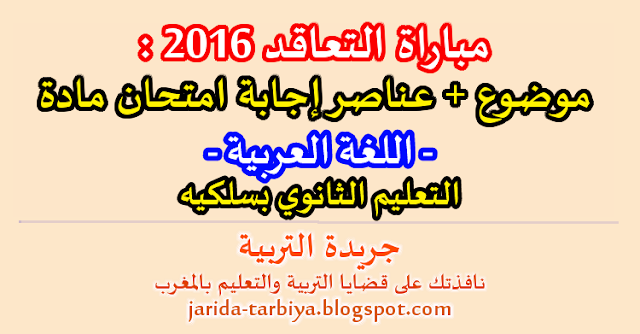 | جريدة التربية ::: مباراة التعاقد 2016 : امتحان مادة اللغة العربية للتعليم الثانوي بسلكيه + عناصر الاجابة |